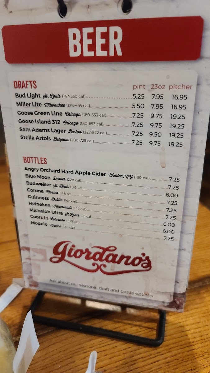 Moving on to the salads, options like the Giordano's House Salad and the Chopped Chicken Salad are fresh and vibrant, marrying seasonal ingredients with delightful dressings. The latter is especially popular, featuring a medley of chicken, bacon, pasta, and blue cheese tossed in honey mustard dressing, ensuring a satisfying start.